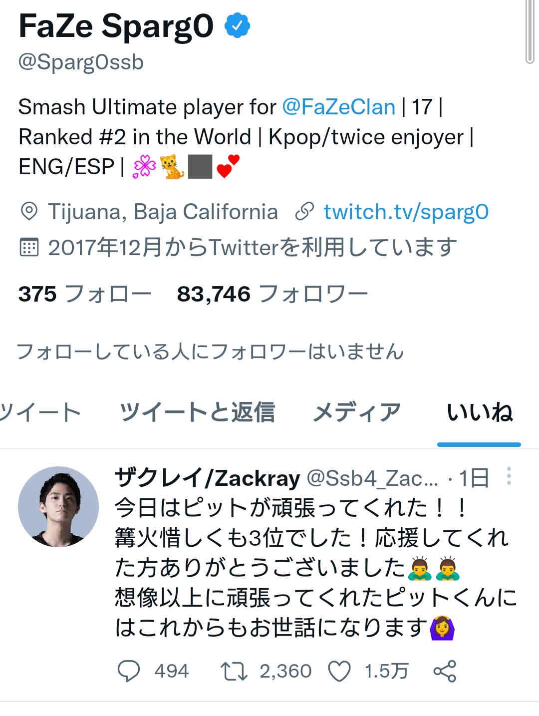 sparg0がザクレイにしかいいねしないの露骨すぎるだろ