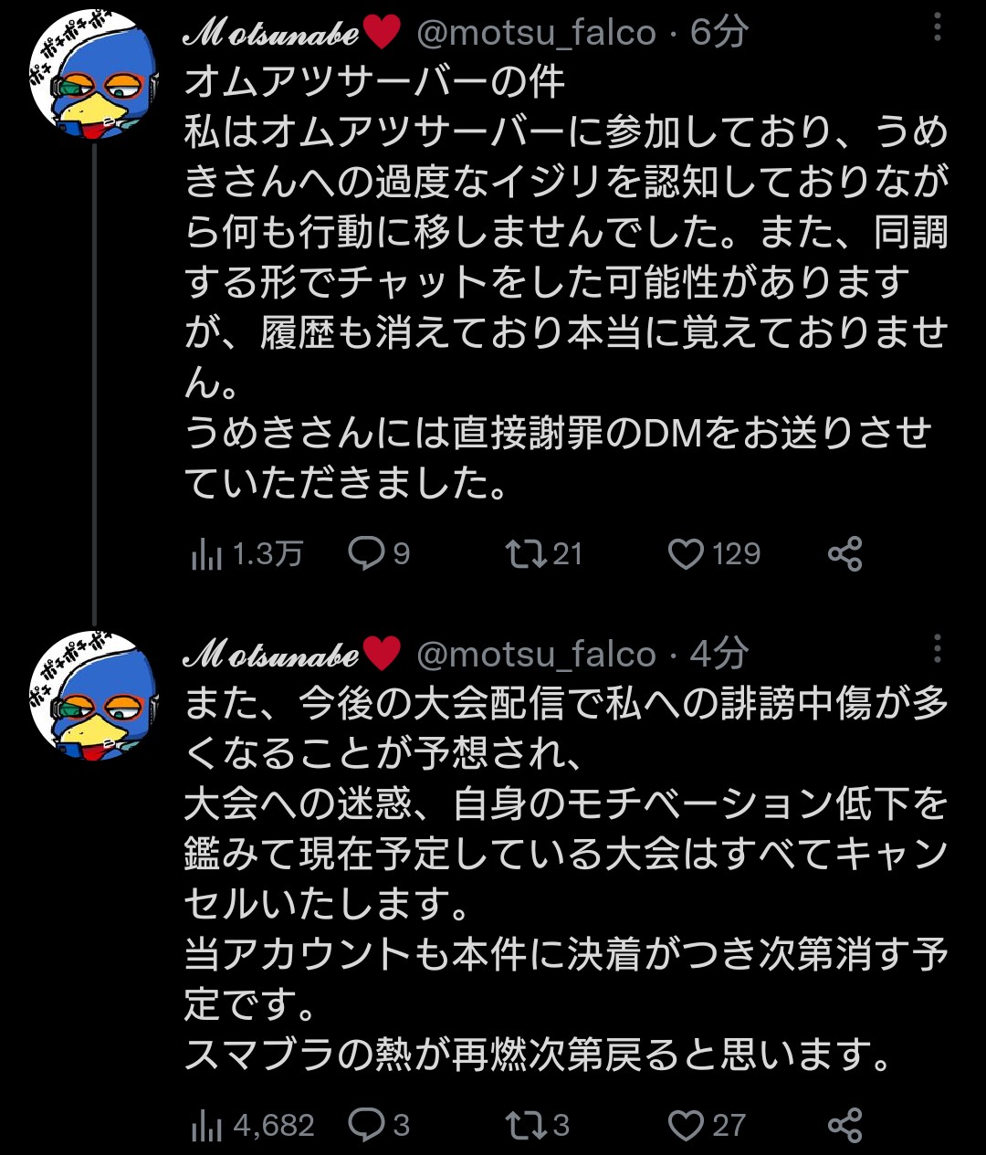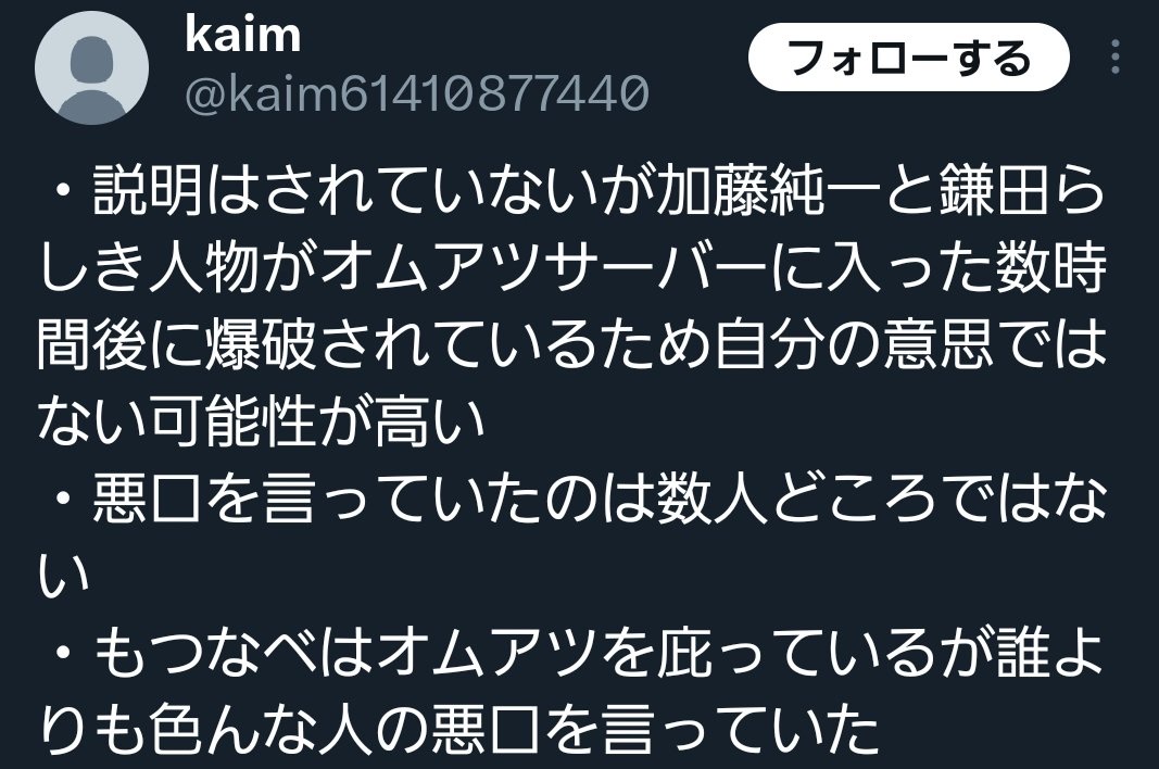 しかも暴露される前のツイートで情報が確定してないのにオムアツを責めるなって擁護してたのもアカン