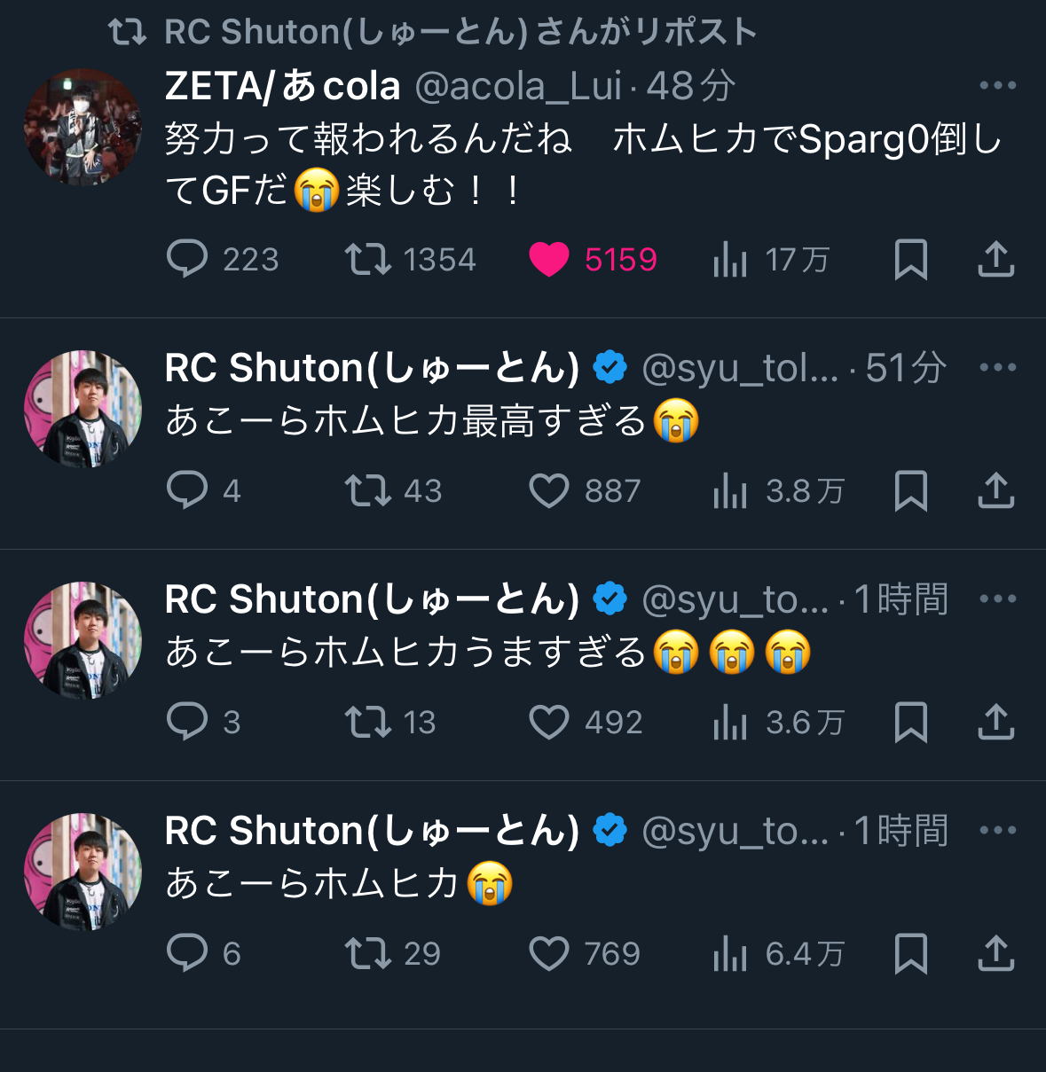 spargo出現で心が折れた結果言い訳しかできなくなったザクレイと勝つために努力し続けたあcolaの対比がヤバい
