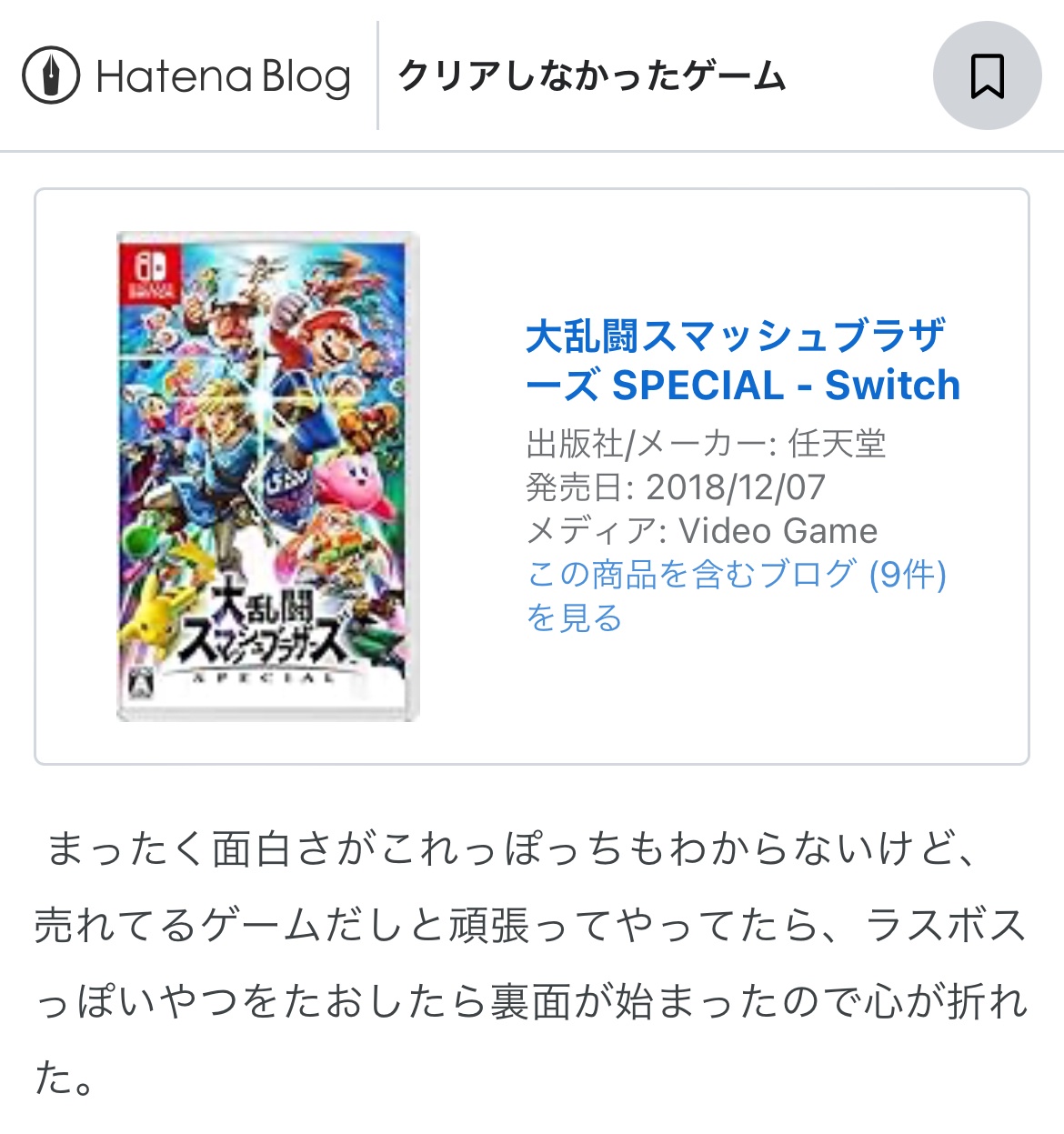 あくまで対戦が面白いのであってソロでスマブラはそりゃそうよとしか