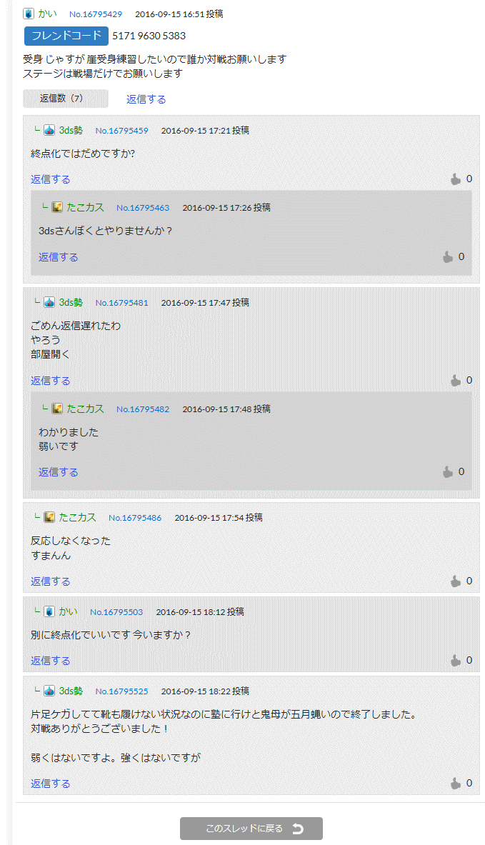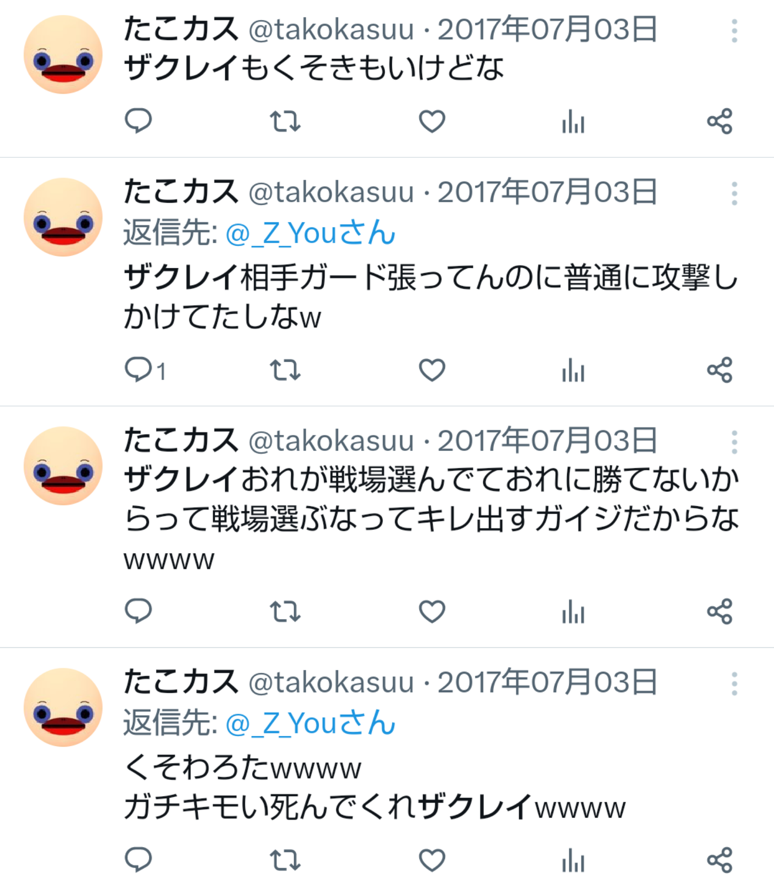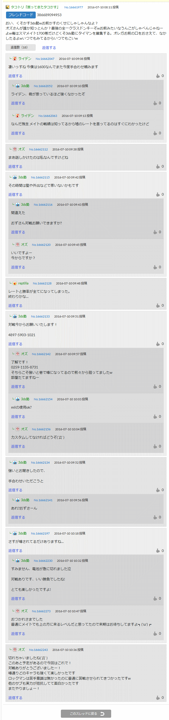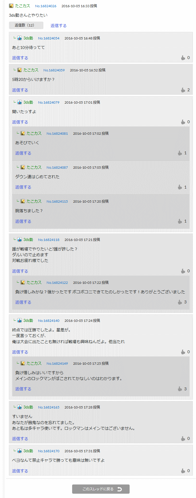 たこカス「負け惜しみかな?強かったです ボコボコニできてたのしかったです!ありがとうございました」