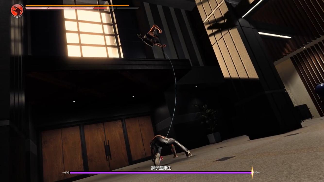 桐生「恩に着るぜ!」参戦の招待状を持ち、壁を破って外に出て二段ジャンプする桐生一馬。外人狂喜乱舞。